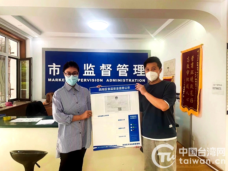 臺商吳志淳領到食品經(jīng)營許可證(圖片來源:大連市臺辦)