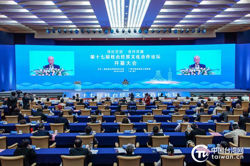 2021年11月3日,第十七屆桂臺(tái)經(jīng)貿(mào)文化合作論壇在廣西南寧開幕(圖片來源:廣西臺(tái)辦)