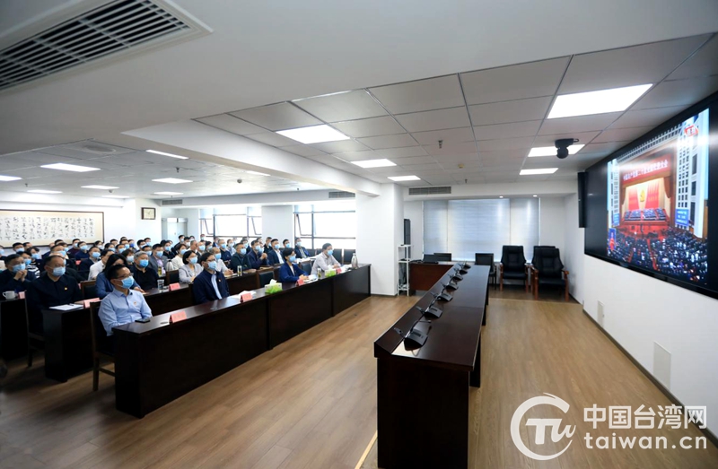 江蘇臺辦系統(tǒng)黨員干部集體收看黨的二十大開幕會(圖片來源:江蘇省臺辦)