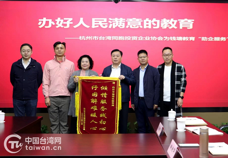 中國臺灣網(wǎng)10月24日訊 近日,杭州市錢塘區(qū)召開臺胞子女入學工作座談會,有臺胞代表向區(qū)教育局、區(qū)臺辦贈送錦旗,對錢塘區(qū)為解決臺胞子女入學問題所做的努力表示感謝。