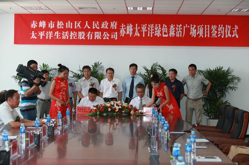 2015年赤峰市松山區(qū)政府區(qū)長田向存與太平洋生活控股有限公司大陸投資事業(yè)處總裁梁曉暄代表雙方簽約。(圖片來源:赤峰市臺辦)