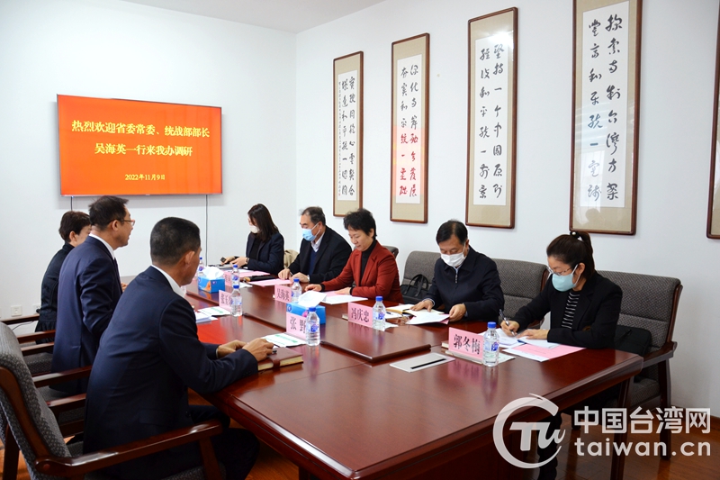 吉林省委常委、統(tǒng)戰(zhàn)部部長(zhǎng)吳海英到省委臺(tái)辦機(jī)關(guān)走訪調(diào)研(圖片來源:吉林省委臺(tái)辦)