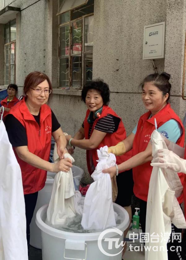 8月炎炎夏日,臺(tái)灣同胞賴麗卿和學(xué)員們一起在戶外清洗學(xué)校演出服裝,這是校義工隊(duì)組織的志愿服務(wù)工作。烈日下,志愿者們熱情如火,清洗、晾曬、熨燙,演出服裝很快就煥然一新了。