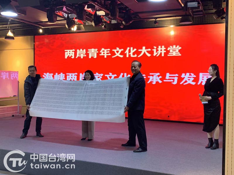 當(dāng)日,臺灣知名文化學(xué)者韓榮華現(xiàn)場授課,為“線下+云上”的40余位兩岸青年講解《海峽兩岸家文化傳承與發(fā)展》。