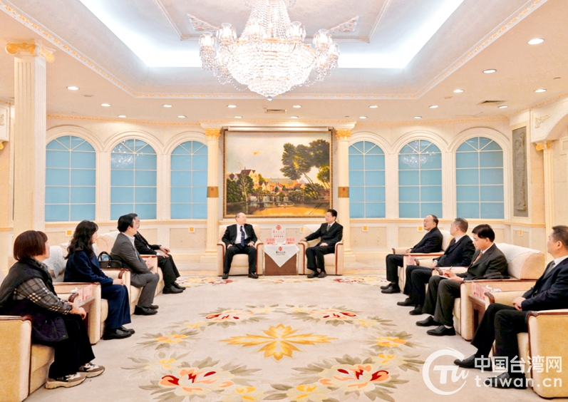 湖南省委臺辦主任曾智夫會見中國國民黨中常委王伯綸一行(圖片來源:湖南省臺辦)