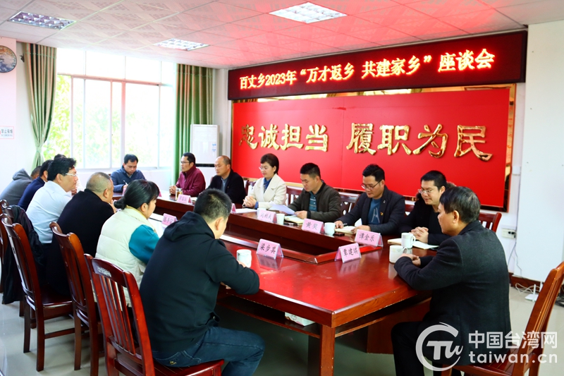 象州縣百丈鄉(xiāng)召開“萬才返鄉(xiāng) 共建家鄉(xiāng)”座談會(圖片來源:廣西來賓市象州縣臺辦)