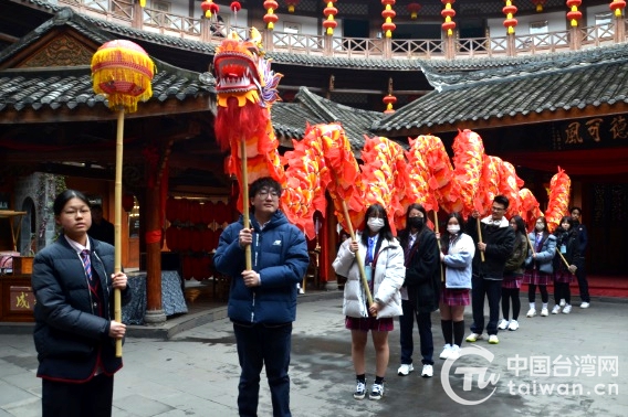 學(xué)習(xí)舞龍(圖片來源:四川省臺(tái)辦)
