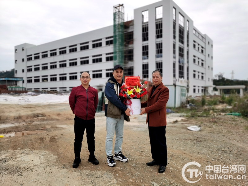 防城港市臺(tái)辦到東興市偉立紡織品有限公司了解新建廠房情況,并送上祝福(圖片來源:廣西防城港市臺(tái)辦)