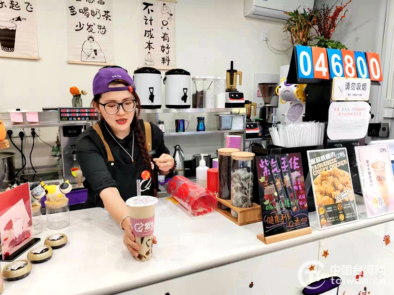 中國臺灣網(wǎng)3月21日訊 在國家級海峽兩岸青年就業(yè)創(chuàng)業(yè)基地——亞臺青(成都)海峽青年創(chuàng)業(yè)園一樓臨街鋪面,有一家名為“紫氣茶來”的奶茶店,店主是一位來自臺灣的90后女孩——陳韻如。