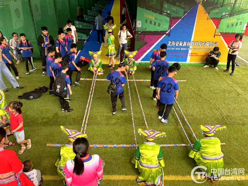在北海唯一的少數(shù)民族行政村北海銀海區(qū)東山村,村演藝隊為大家獻唱《山歌好比春江水》《多謝了》等膾炙人口的經(jīng)典民歌,婉轉(zhuǎn)嘹亮的歌聲響遍整個活動現(xiàn)場,臺胞臺屬們在熱情的東山村少數(shù)民族同胞帶領(lǐng)下,學習跳竹竿舞技巧,加入載歌載舞的人群里。