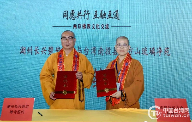 隨后,長(zhǎng)興碧巖禪寺與臺(tái)灣南投縣東方凈苑簽訂交流合作協(xié)議,旨在進(jìn)一步創(chuàng)新交流形式,推動(dòng)兩地佛教界的信息聯(lián)通共享,豐富兩地佛教文化交流內(nèi)涵,切實(shí)推進(jìn)兩地佛教界在文化、教育、慈善等領(lǐng)域交流合作的深度和廣度,促進(jìn)兩岸同胞越走越近。