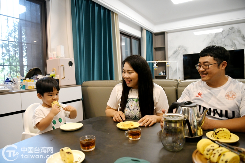 2021年底,沙部·魯比通過住房公積金貸款,在學(xué)校附近購置了一套140平方米的住房。今年春節(jié)前夕,一家三口住進(jìn)了新房,成為首個從臺灣遷居廣西的臺灣教師家庭。“我們在這個小區(qū)生活滿舒適的,我兒子很喜歡騎行,小區(qū)里設(shè)有自行車道,很適合我兒子運(yùn)動!迸蒜⒈硎竞芟硎茉谀蠈幍纳睿拔椰F(xiàn)在在家照顧兒子,每天都想著法子給兒子和丈夫做好吃的糕點!彼谂蝺鹤由嫌變簣@后,能在學(xué)校附近開一家臺灣美食店,讓當(dāng)?shù)孛癖娨材芷穱L到臺灣美食。