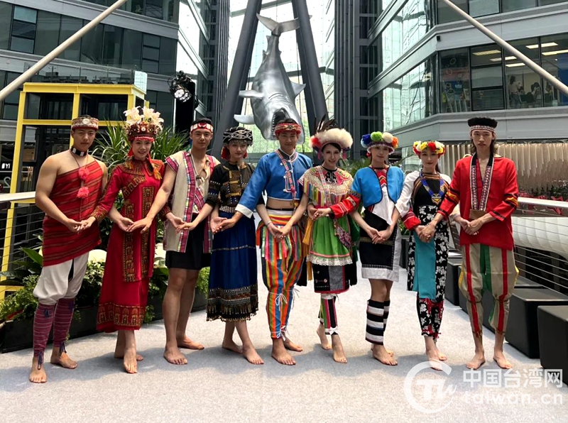 現(xiàn)場身著臺灣少數(shù)民族服飾的模特合影(圖片來源:北京市臺聯(lián))