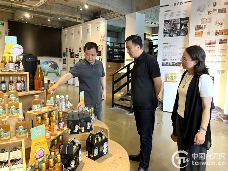 了解幸福公社農(nóng)業(yè)創(chuàng)客中心的展陳農(nóng)特產(chǎn)品(圖片來源:四川省臺辦)