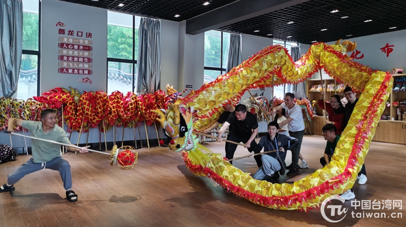體驗(yàn)舞龍(圖片來(lái)源:寧波市臺(tái)辦)