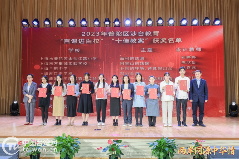 活動現(xiàn)場為獲得2023年普陀區(qū)涉臺教育“百課進百!薄笆呀贪浮钡慕處熯M行了頒獎。(中國臺灣網(wǎng)、上海市臺辦、普陀區(qū)臺辦聯(lián)合報道)