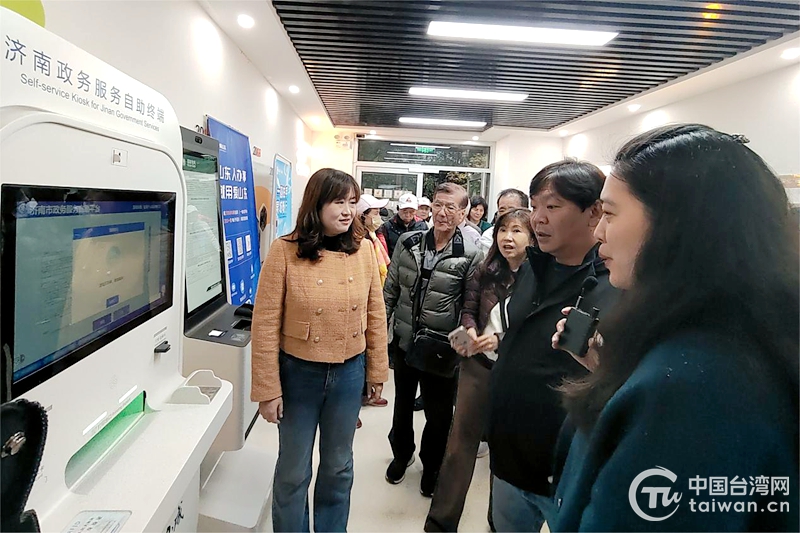臺(tái)灣客人近距離體驗(yàn)社區(qū)政務(wù)服務(wù)自助終端(濟(jì)南市臺(tái)港澳辦供圖)