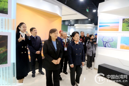 與會人員觀看“黃河口·日月潭”風(fēng)光攝影聯(lián)展(東營市臺辦供圖)