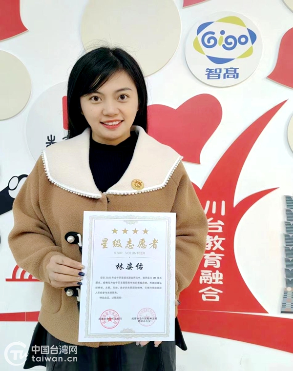 林姿佑獲成都金牛區(qū)“四星級(jí)志愿者”稱號(hào)(成都市金牛區(qū)臺(tái)辦供圖)