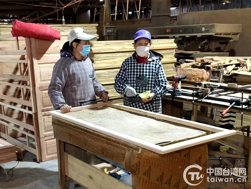 中國(guó)臺(tái)灣網(wǎng)2月8日訊 廠房里,數(shù)十名工人忙著鋸平原木、烘干木板、機(jī)房精切、拼板、砂光、安裝、打磨、噴油、包裝……這是河池市金城江區(qū)臺(tái)辦工作人員近日在臺(tái)資企業(yè)廣西河池市正興木業(yè)有限責(zé)任公司生產(chǎn)線車間里看到的景象。