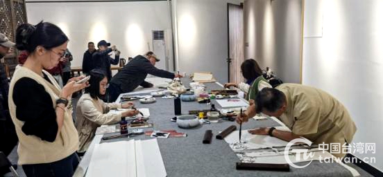 中國臺灣網(wǎng)3月7日訊 5日,金臺兩地書畫交流筆會在金華市兩岸書畫家工作站舉行。來自臺灣南投的20多位臺胞書畫愛好者走進“書畫之鄉(xiāng)”浦江,與當?shù)貢嫶髱熋鎸γ娼涣鳌?/p>