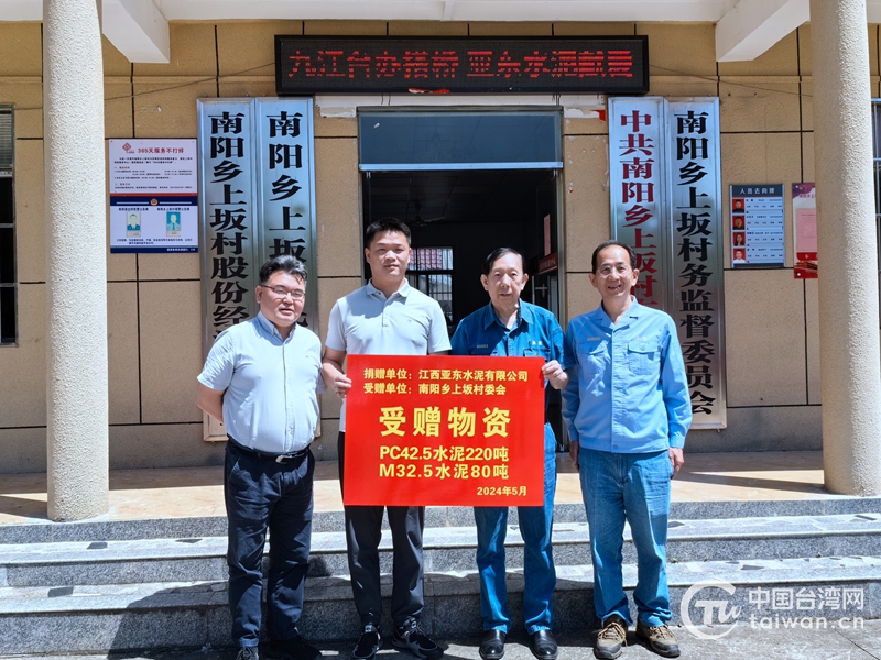 中國(guó)臺(tái)灣網(wǎng)5月17日訊 近日,臺(tái)企遠(yuǎn)東集團(tuán)亞泥(中國(guó))控股公司江西亞?wèn)|水泥有限公司向九江市臺(tái)辦鄉(xiāng)村振興幫扶村——瑞昌市南陽(yáng)鄉(xiāng)上坂村捐贈(zèng)PC42.5水泥220噸、M32.5水泥80噸,用于支持該村推進(jìn)鄉(xiāng)村振興建設(shè)。九江市臺(tái)辦主任吳斌、江西亞?wèn)|水泥有限公司總經(jīng)理田隆等參加捐贈(zèng)儀式并座談交流。