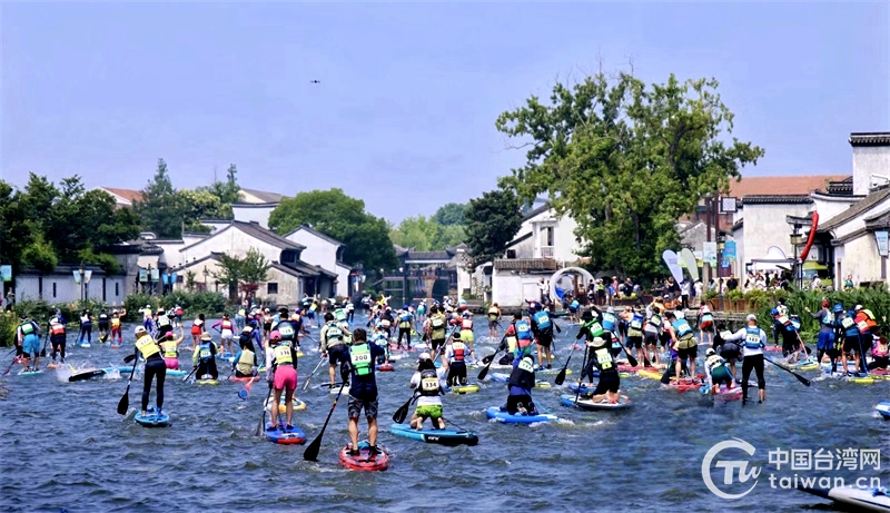 中國臺灣網(wǎng)6月24日訊 近日,第六屆南潯古鎮(zhèn)槳板公開賽暨水上戶外運動周在浙江省湖州市南潯古鎮(zhèn)舉辦,來自全國各地的300余名槳板運動員齊聚一堂,其中有10位來自臺灣的運動員選手,在古鎮(zhèn)共同演繹水上運動的激情與魅力。