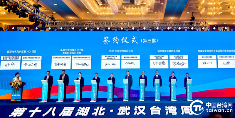 鄂臺企業(yè)家代表現(xiàn)場簽約。(中國臺灣網(wǎng)發(fā))