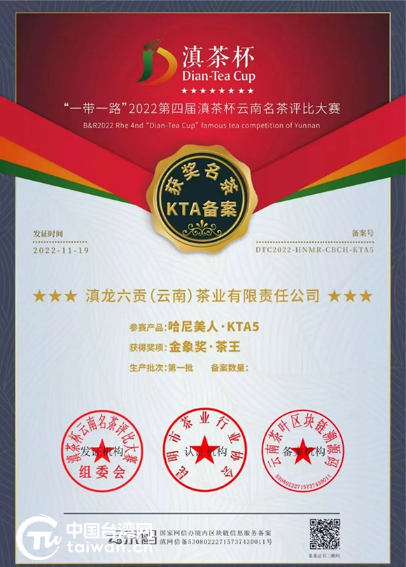 2022年邱寬武的“哈尼美人茶”榮獲云南省名茶證書(shū)