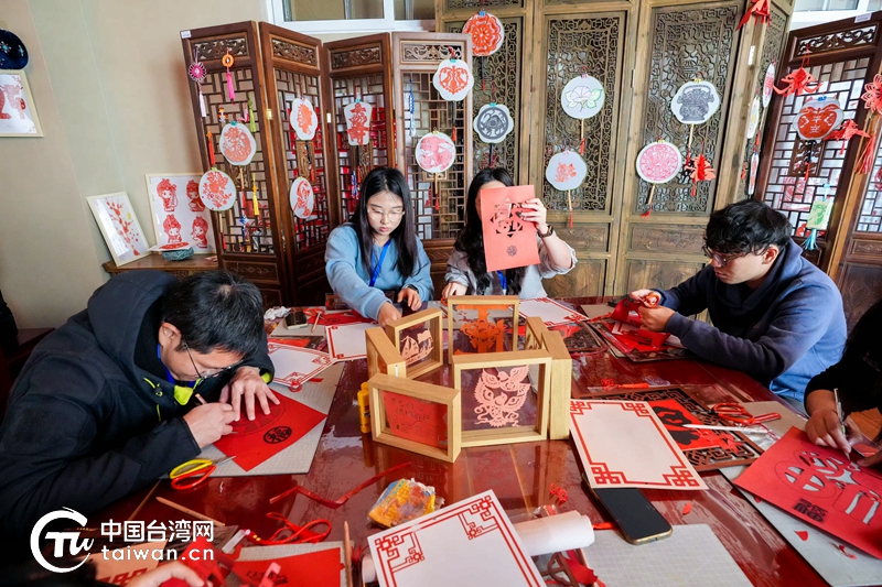 臺灣青年在學習剪紙。(中國臺灣網發(fā))