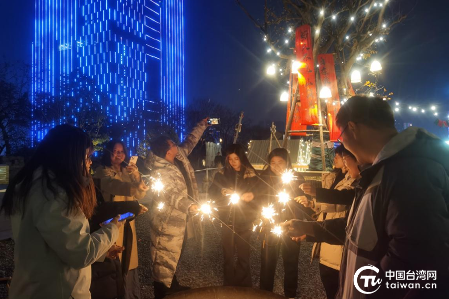 臺灣青年放煙花,許下新年愿望。(中國臺灣網(wǎng)發(fā))