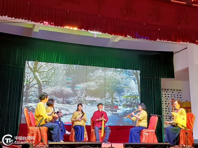 晚7時,碼頭鎮(zhèn)大廷僑賢文化活動中心燈火如晝。在《迎賓曲》的裊裊清音中,金門樂府傳統(tǒng)樂團團長楊明雪率隊登臺,先后與南安市南音研究會會長戴文成、碼頭鎮(zhèn)南音協(xié)會會長吳天真、大庭村南音文化促進會代表戴祖白互贈會旗!斑@不僅是旗幟的傳遞,更是兩岸南音人守護共同文脈的誓言。”金門樂府團長楊明雪表示。據(jù)考證,金門南音曲譜中保留的《聽見雁聲悲》等古曲,與碼頭鎮(zhèn)傳承的版本同出一脈,這就是文化傳承的力量!