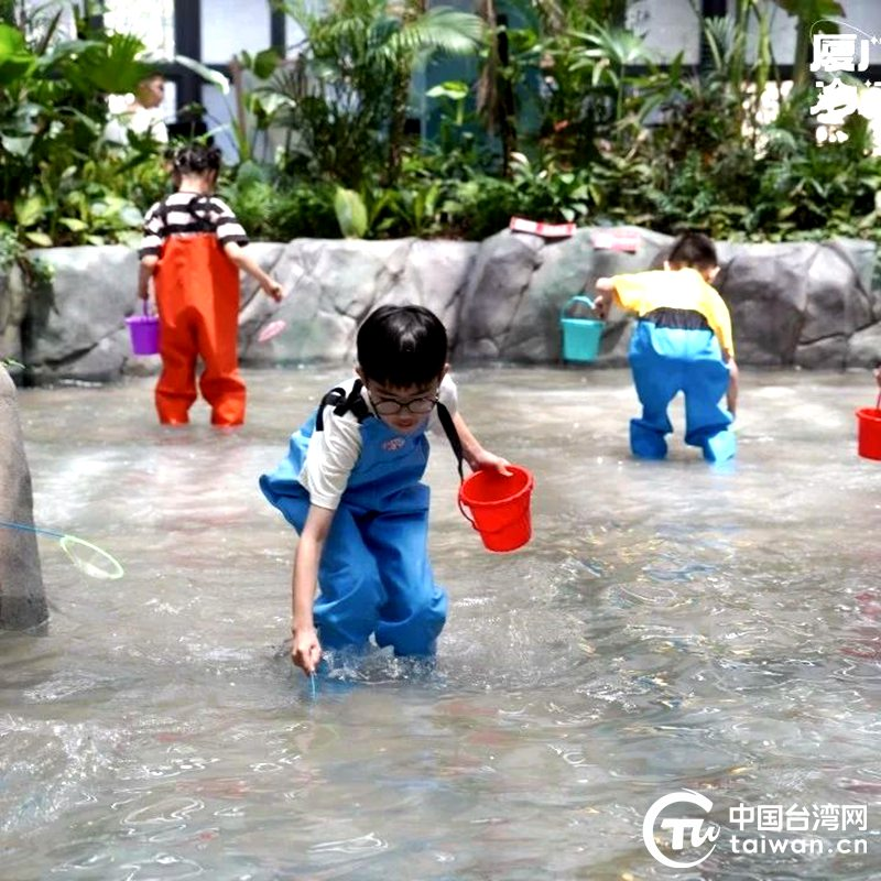 感受童趣盎然,體驗“趕!睒啡ぁQ上趕海服,拎上小桶和網(wǎng)兜,兩岸金胞青少年們瞬間化身為潮汐小獵人,在人造潮池邊開啟一場觸手可及的海洋探險。