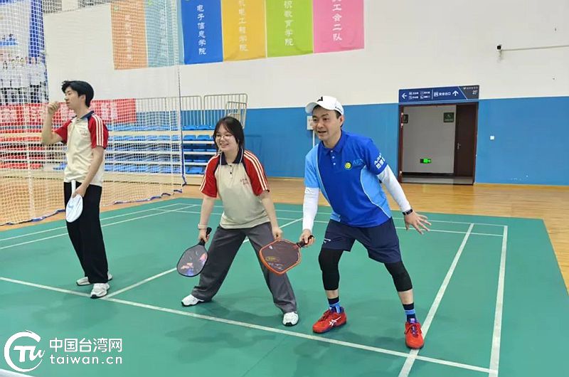 黃緯纮在宜昌三峽技術(shù)學(xué)院做師生匹克球推廣。(中國(guó)臺(tái)灣網(wǎng)發(fā))
