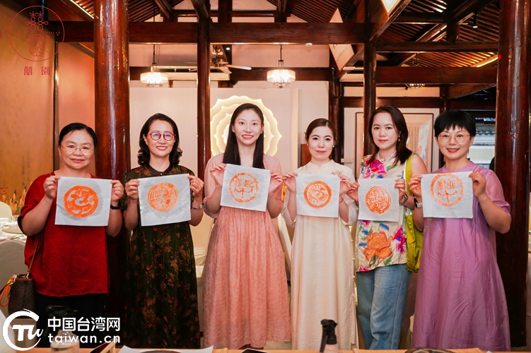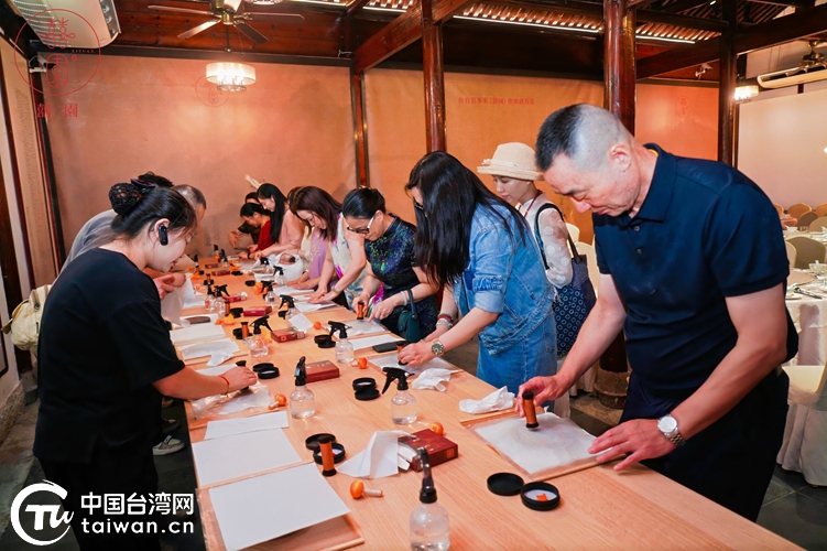在甬臺胞臺屬體驗非遺朱砂拓印技藝。(中國臺灣網(wǎng)發(fā))