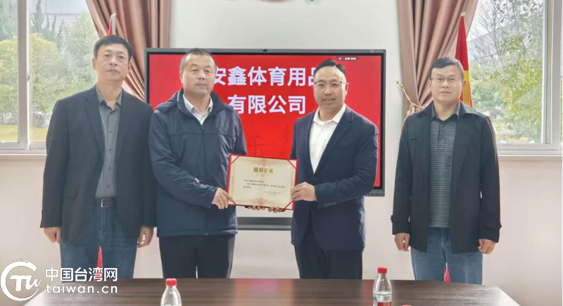安慶市安鑫體育用品有限公司收到捐贈(zèng)證書。(中國(guó)臺(tái)灣網(wǎng)發(fā))