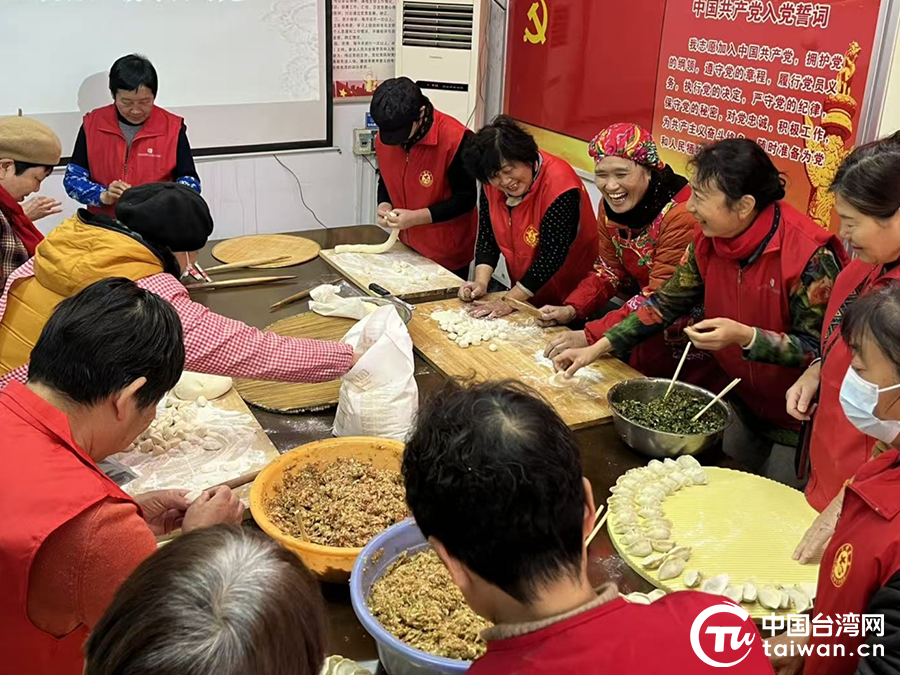 臺(tái)胞臺(tái)屬代表與社區(qū)黨員志愿者一起包餃子(中國(guó)臺(tái)灣網(wǎng)發(fā))