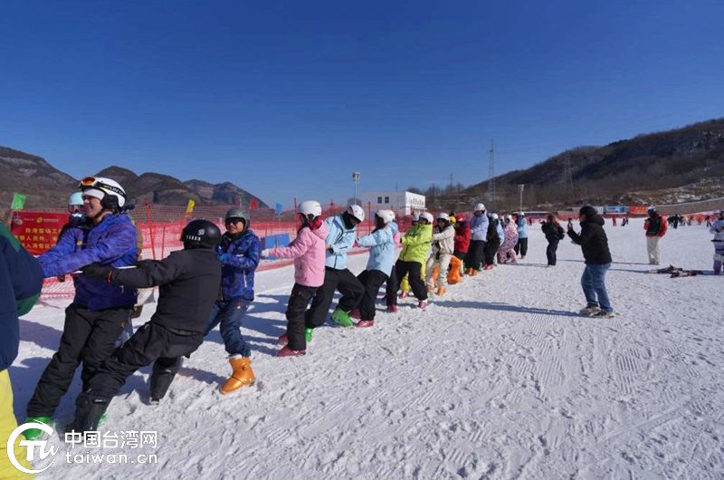 兩岸青年在滑雪場組織拔河比賽。(中國臺灣網(wǎng)發(fā))