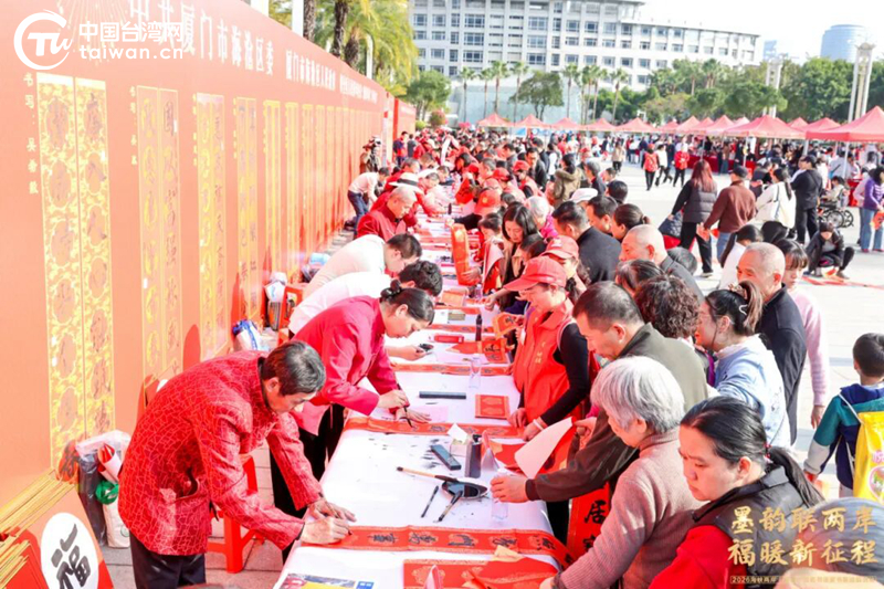 2026海峽兩岸(海滄)百名書法家書春送福聯(lián)袂“福傳海滄·閱見文明”福袋迎新活動(dòng)在廈門海滄市民廣場拉開帷幕。(中國臺(tái)灣網(wǎng)發(fā))