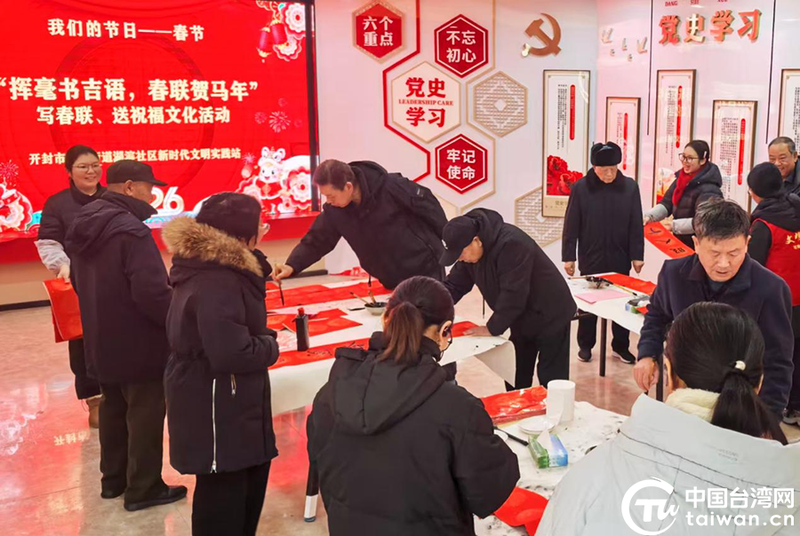 中國臺(tái)灣網(wǎng)2月3日訊 為傳承中華優(yōu)秀傳統(tǒng)文化,營造歡樂祥和的新春氛圍,近日,開封市城鄉(xiāng)一體化示范區(qū)臺(tái)辦組織開展“揮毫?xí)Z 春聯(lián)賀馬年”文化交流活動(dòng),邀請(qǐng)轄區(qū)臺(tái)胞臺(tái)屬和群眾參加,讓大家在紅紅火火的年味兒中感受傳統(tǒng)文化魅力,共迎新春佳節(jié)。