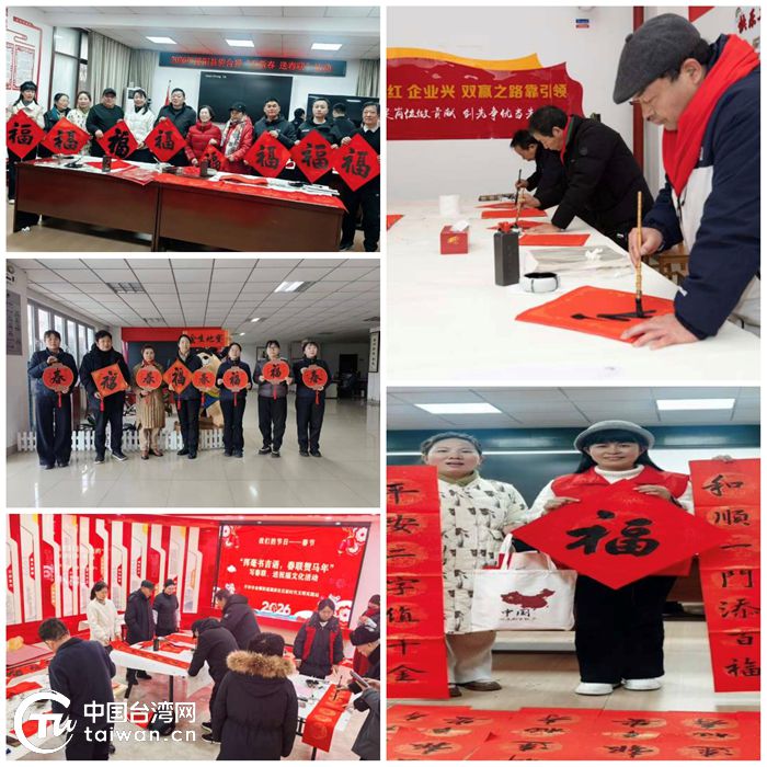 駐馬店市泌陽縣臺(tái)辦組織開展“墨香傳情暖臺(tái)心”送春聯(lián)活動(dòng)。當(dāng)?shù)刂麜覀儞]毫潑墨、筆走龍蛇,將大家的美好祝愿化作一副副筆力遒勁、寓意吉祥的春聯(lián)與“!弊,引得現(xiàn)場臺(tái)胞臺(tái)屬駐足欣賞、頻頻稱贊。活動(dòng)還為到場的每一位臺(tái)胞臺(tái)屬精心準(zhǔn)備了專屬慰問品——印制“兩岸一家親 同心共圓夢(mèng)”字樣的抽紙及手提袋等,傳遞著兩岸攜手同行、共筑美好未來的誠摯心愿。(中國臺(tái)灣網(wǎng)、河南省臺(tái)辦聯(lián)合報(bào)道)