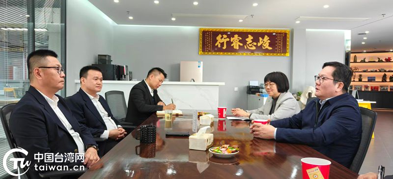 方濤一行與東莞臺商協(xié)會會長、信易集團(tuán)總經(jīng)理吳峻睿座談。(中國臺灣網(wǎng)發(fā))
