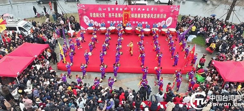 活動現(xiàn)場,非遺銅鼓展演氣勢恢宏、熱鬧非凡,鏗鏘有力的鼓點(diǎn)、精彩靈動的表演,充分展現(xiàn)了西平傳統(tǒng)民俗文化的獨(dú)特魅力,吸引臺胞、臺屬與廣大群眾駐足觀看、共慶佳節(jié)。