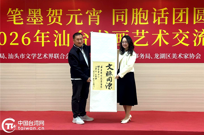 中國(guó)臺(tái)灣網(wǎng)3月9日訊 為深化汕臺(tái)文化交流,共慶元宵佳節(jié),3月7日上午,由汕頭市臺(tái)灣事務(wù)局、汕頭市文學(xué)藝術(shù)界聯(lián)合會(huì)指導(dǎo),龍湖區(qū)臺(tái)灣事務(wù)局、龍湖區(qū)美術(shù)家協(xié)會(huì)主辦的“筆墨賀元宵 同胞話團(tuán)圓”——2026年汕臺(tái)書畫藝術(shù)交流會(huì)在廣東省嶺東美術(shù)館舉行。