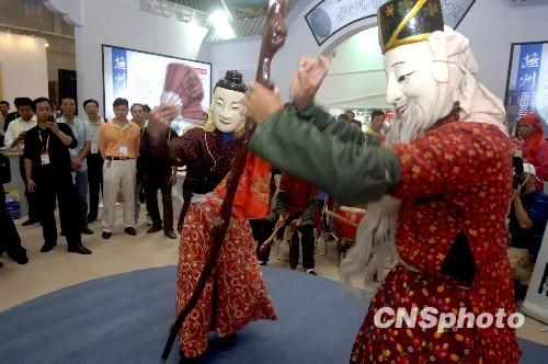 10月29日,殷商時期的閩西北原始儺舞亮相廈門文博會,這種民間舞蹈古樸神秘、粗獷奔放,被人類學、歷史學及藝術學視為活化石。當日,第二屆海峽兩岸(廈門)文化產業(yè)博覽交易會在廈門開幕。 中新社發(fā) 王東明 攝