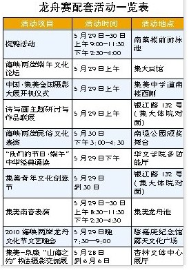 5月29日上午8點半,2010聯(lián)發(fā)嘉庚杯敬賢杯海峽兩岸龍舟賽將在集美龍舟池激情開賽。