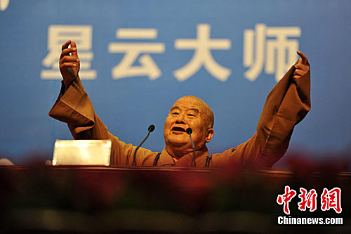 4月5日,星云大師是于廈大九十周年校慶之際,前來(lái)廈大參加“走近大師”系列講座,并發(fā)表“空有之關(guān)系”的演講。中新社發(fā) 王東明 攝