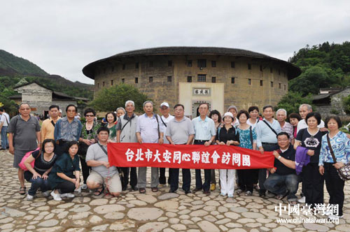 中國(guó)臺(tái)灣網(wǎng)5月16日永定消息 日前,臺(tái)北市大安同心聯(lián)誼會(huì)訪問(wèn)團(tuán)一行25人到永定土樓參觀訪問(wèn)。永定縣人大常委會(huì)楊德如副主任、永定縣臺(tái)灣事務(wù)辦公室林熙賢主任前往湖坑鎮(zhèn)接待、陪同。圖為參訪團(tuán)成員在振成樓前合影。(中國(guó)臺(tái)灣網(wǎng)、福建省永定縣臺(tái)辦聯(lián)合報(bào)道)
