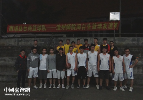 中國(guó)臺(tái)灣網(wǎng)12月11日漳州消息 日前,漳州市南靖縣臺(tái)商籃球隊(duì)與漳州師范學(xué)院閩臺(tái)生籃球友誼賽在漳州師院燈光籃球場(chǎng)舉行。雙方實(shí)力相當(dāng),比分一直處于膠著狀態(tài)。經(jīng)過四節(jié)比賽,最終閩臺(tái)生籃球隊(duì)以51比48贏得了友誼賽的勝利。賽后,兩隊(duì)球員友好握手,并在球場(chǎng)上合影留念。
