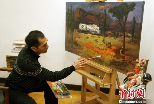 中新網高雄2月13日電(記者陳立宇)在臺灣高雄的畫家群體中,46歲的楊騰集是一個比較特別的人物,因為他曾在北京的中央美術學院深造,師承靳尚誼、孫為民、楊飛云、朝戈、戴士和等油畫名家。